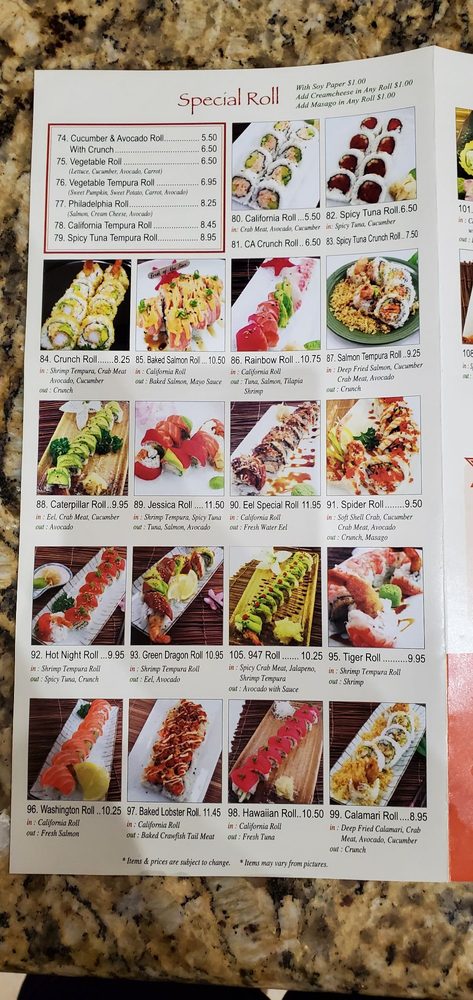 CA roll, fresh salmon, tuna, tilapia, & sushi ebi.