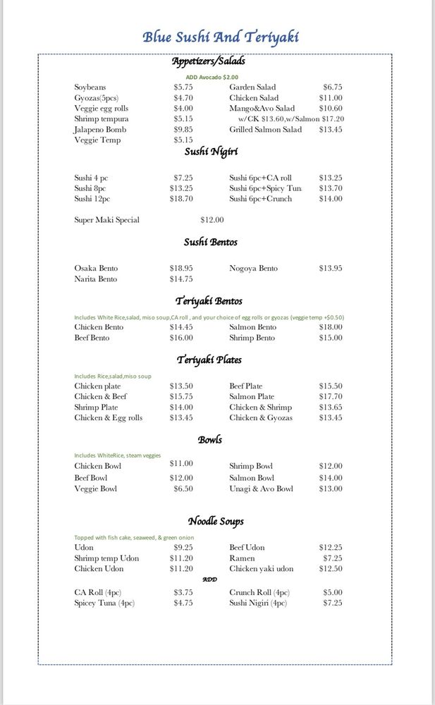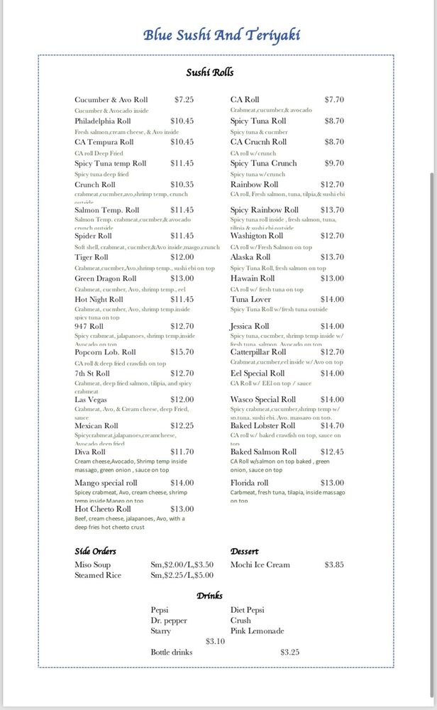 Blue Sushi, a Japanese sushi bar located in Wasco, CA, offers a variety of fresh and delicious sushi options. Customers rave about the quality and taste of the food, with many praising the freshness and standard of the sushi. While the restaurant currently only offers takeout, the prices are reasonable, making it a great spot for a quick and satisfying meal. Reviews mention great service, friendly staff, and a clean and quiet ambiance. The menu includes a range of vegetarian options, catering to different dietary needs. Despite the odd hours of operation and lack of dine-in services, Blue Sushi stands out for its excellent food and efficient service. For sushi lovers in Kern county, Blue Sushi comes highly recommended for a top-notch dining experience.